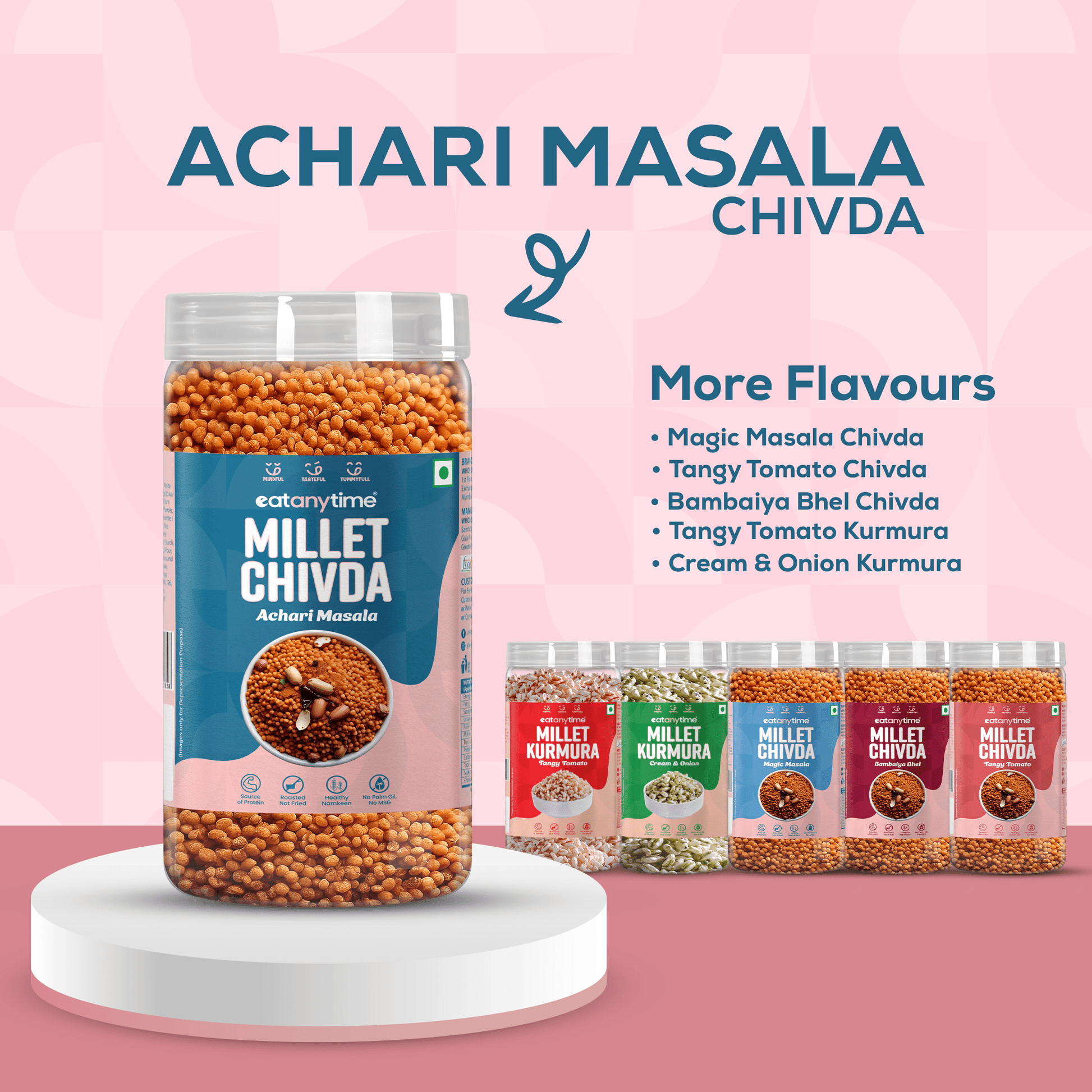 A better-for-you take on the classic namkeen, our Achari Millet Chivda is air-roasted, never fried, and made with a nutritious 4-millet blend. Bursting with bold Indian spices, it’s full of crunch, flavour, and goodness. With less oil and zero trans fats, it’s the perfect mindful snack—anytime, anywhere.