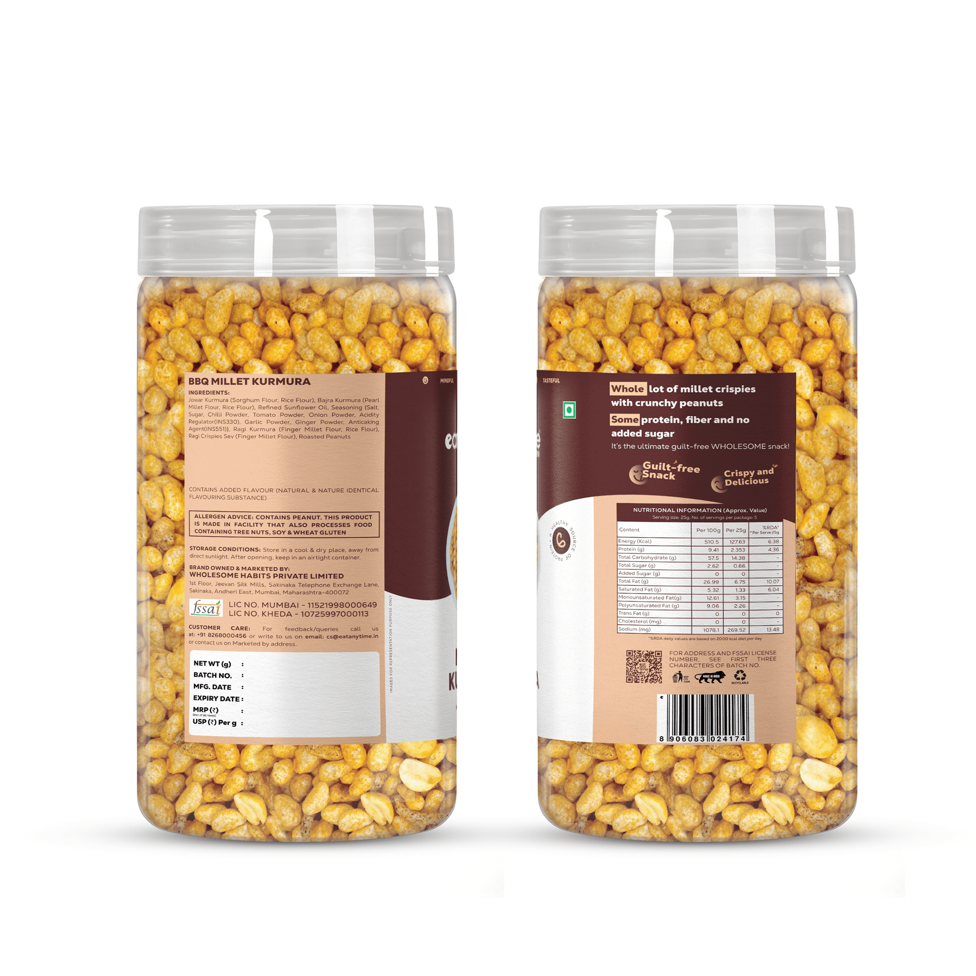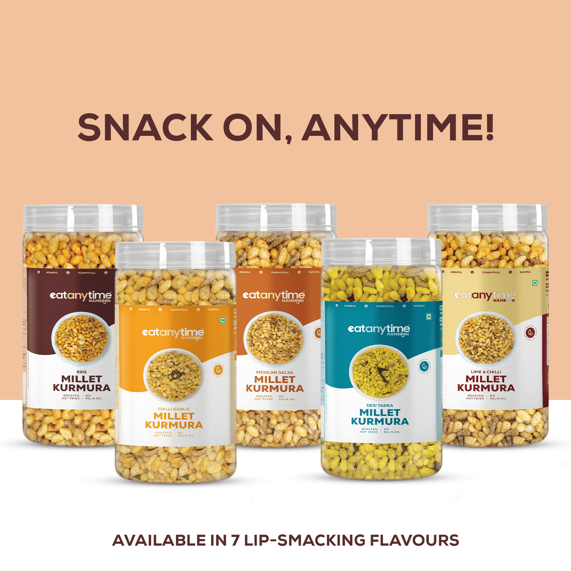 A first-of-its-kind snack, our BBQ Millet Kurmura is a crunchy, better-for-you twist on your classic puffs. Air-roasted and never fried, it’s made with a wholesome millet blend and seasoned with our signature tangy tomato flavour. With less oil and zero trans fats, it’s the ultimate guilt-free indulgence—perfect for every craving, anytime, anywhere.
