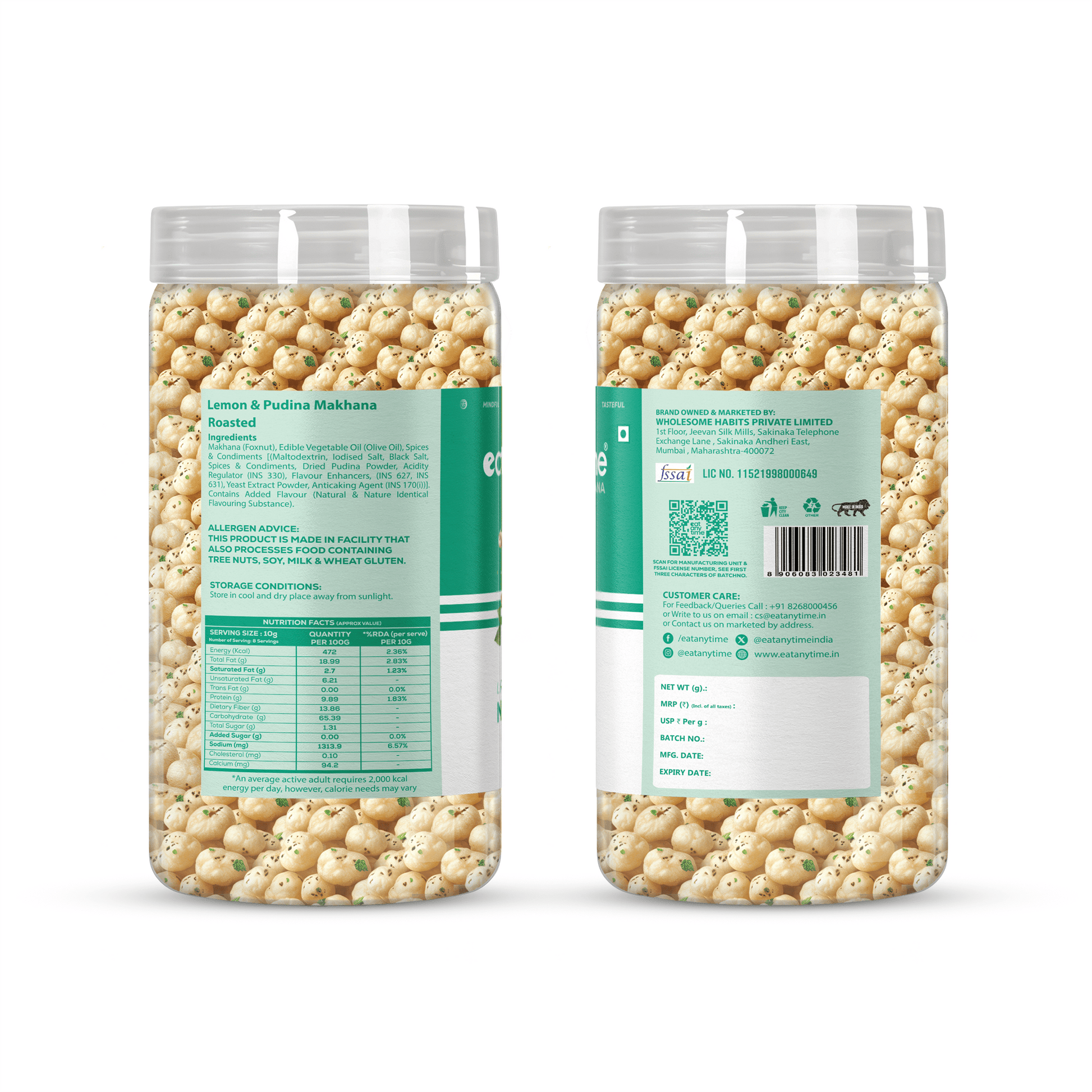 Light, crunchy, and chatpata! Our Lemon Pudina Makhana brings together zesty lemon and cool mint in a snack that’s as refreshing as it is tasty. Roasted in olive oil and perfectly seasoned, it's a great companion for road trips, lunch breaks, or mindful munching at home.