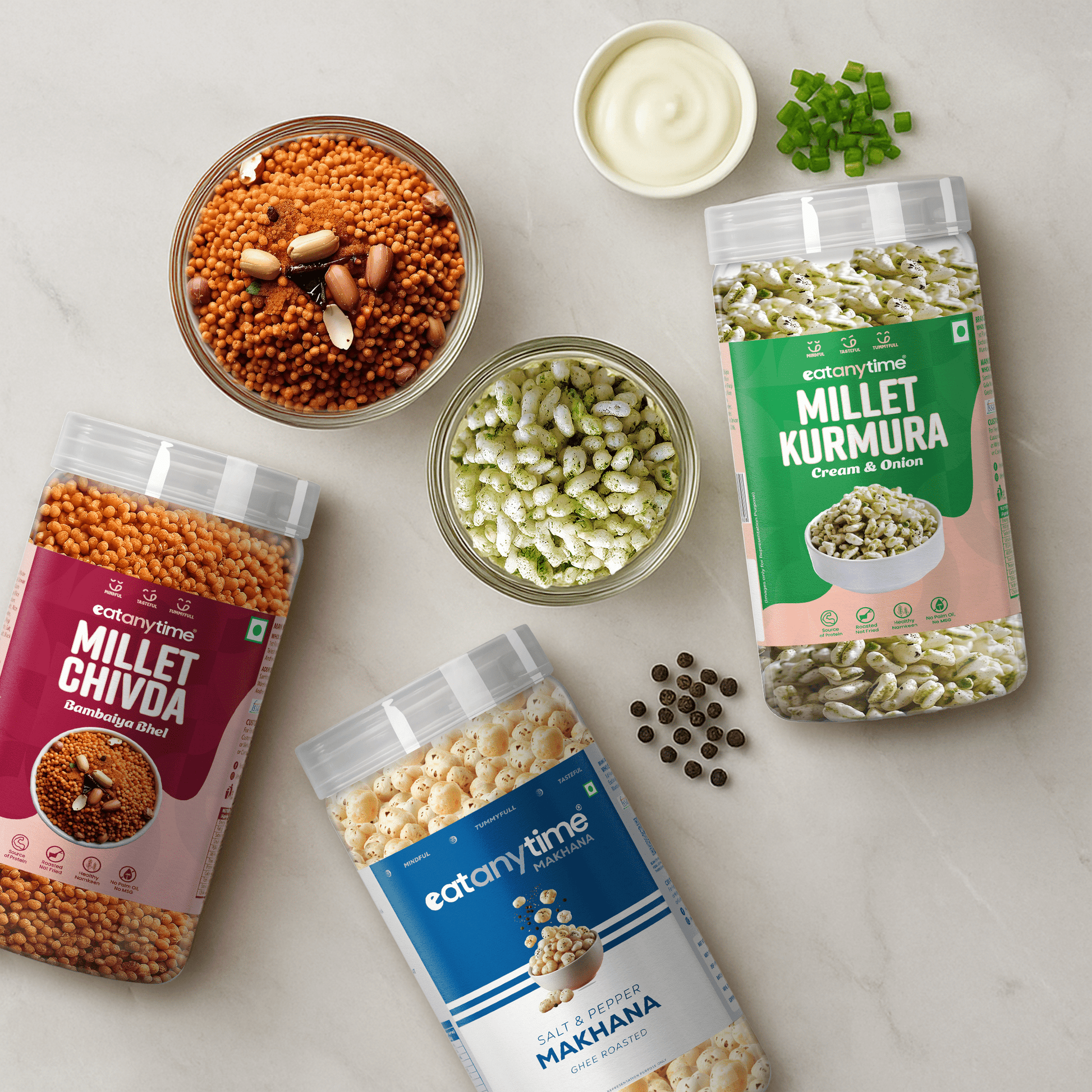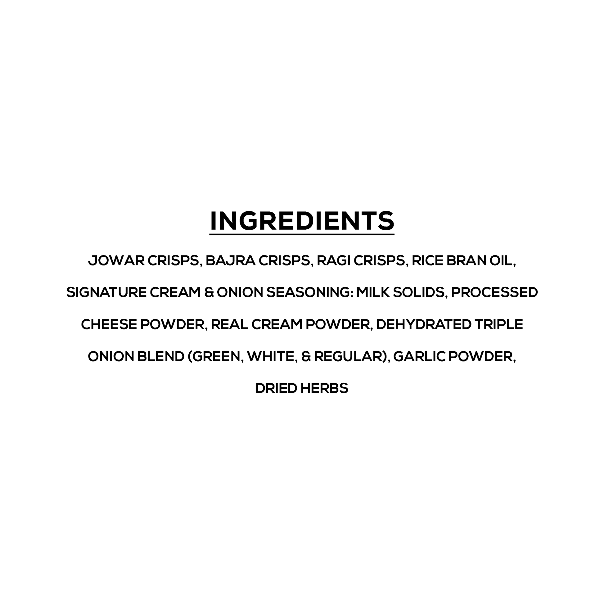 Breaking new ground in the world of Indian snacks, we've reinvented the classic kurmura with a flavor that Indians absolutely adore. Every handful delivers that perfect marriage of creamy indulgence and savory onion notes, wrapped in the light, airy crunch of millet puffs. It's not just a snack, it's a flavor revolution that's good for you!