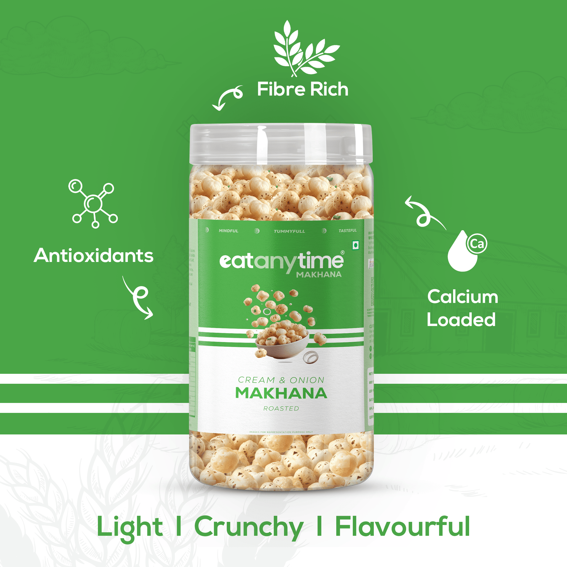 Light, crunchy, and loaded with flavour! Our Cream & Onion Makhana is the perfect guilt-free upgrade to your usual chips. Roasted to crisp perfection and dusted with a delicious blend of cream and onion seasoning. Ideal for snack breaks, movie nights, or anytime cravings.