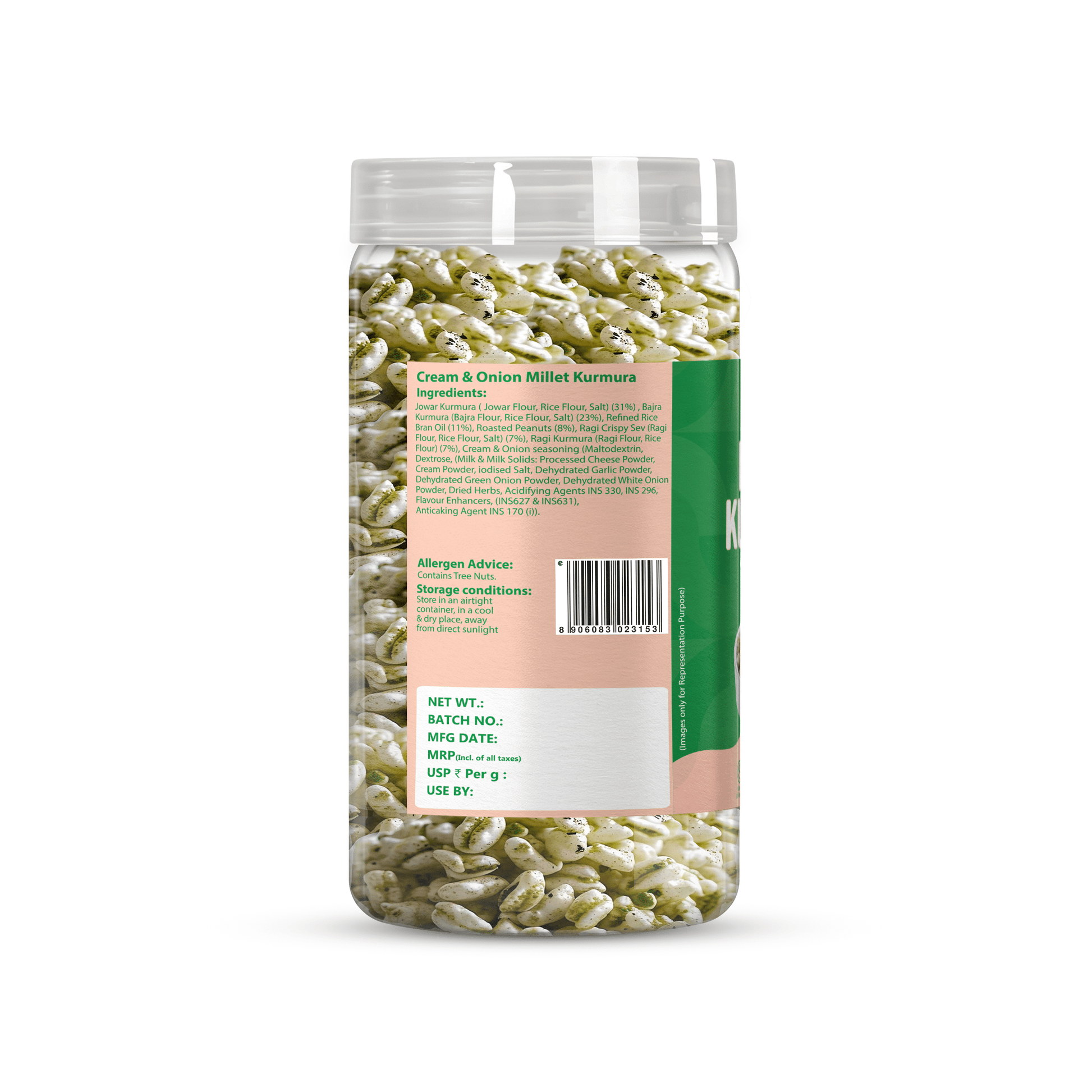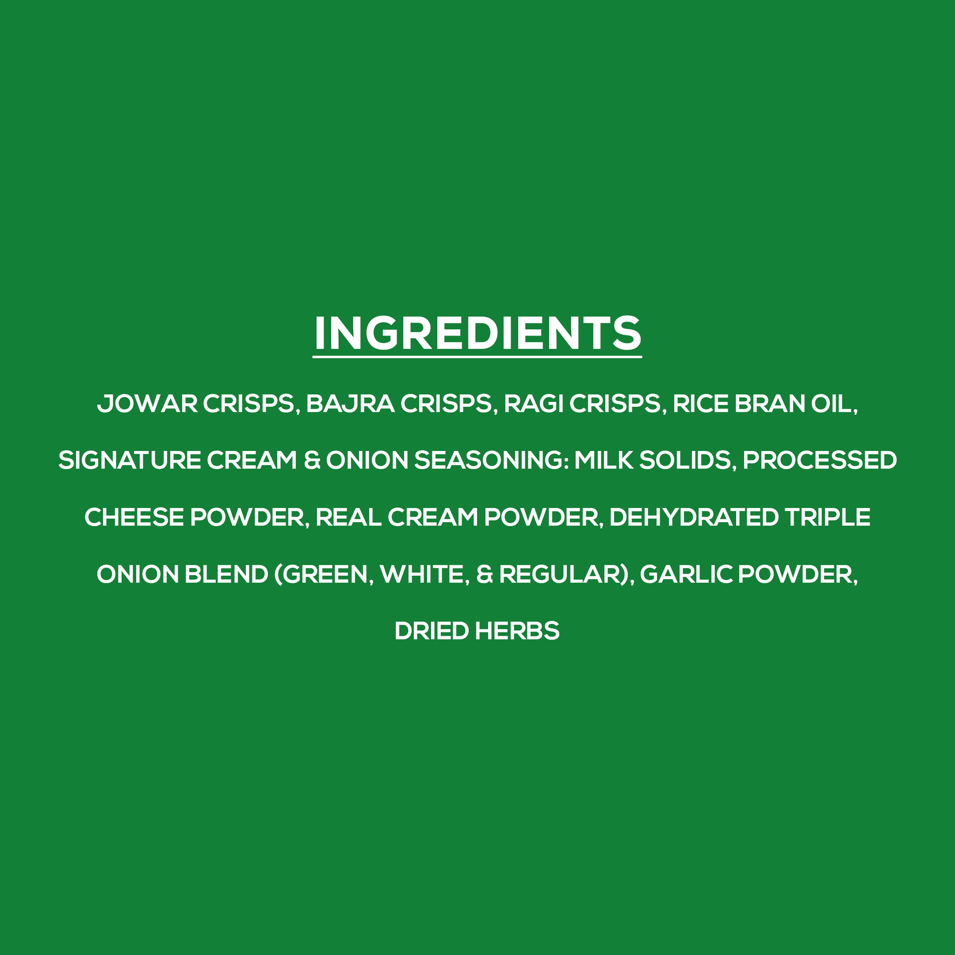 A first-of-its-kind snack, our Cream & Onion Millet Kurmura is a crunchy, better-for-you twist on your classic puffs. Air-roasted and never fried, it’s made with a wholesome millet blend and seasoned with our signature cream & onion flavour. With less oil and zero trans fats, it’s the ultimate guilt-free indulgence—perfect for every craving, anytime, anywhere.