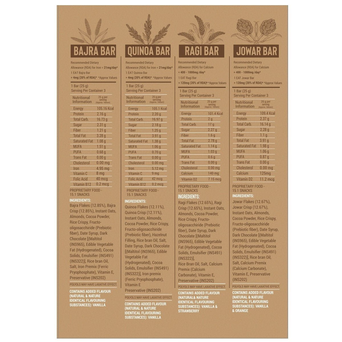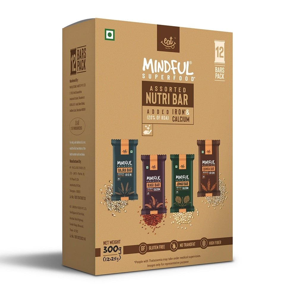 - Millet Variety Box (12 bars) – delicious snack bars made with super grains like ragi, jowar, quinoa & bajra, keeping you full & energized. Enriched with Iron & Calcium as well.