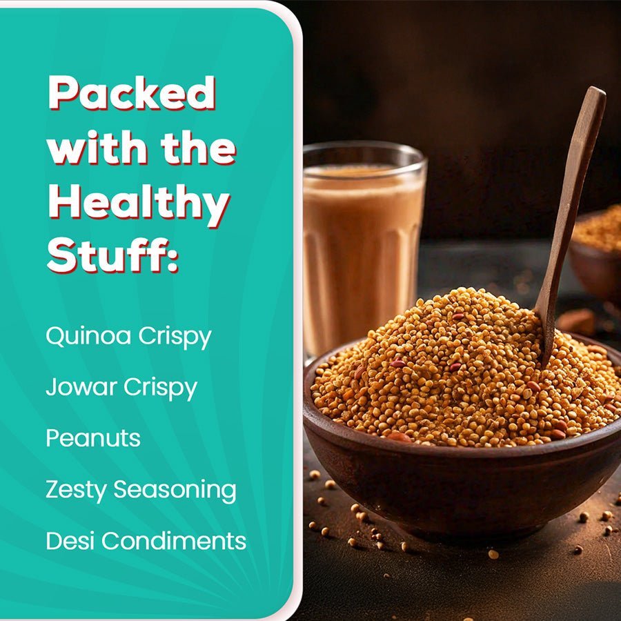 Missing the vibrant flavors of Mumbai's street food? Discover our Bambaiya Bhel Millet Chivda - where the bustling energy of Mumbai's chowpatty meets wholesome millet nutrition!