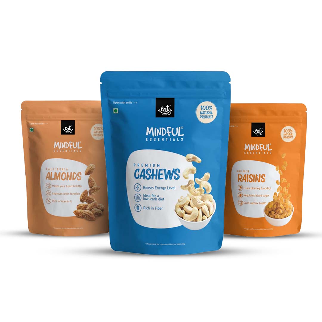 EAT Anytime Mindful brings to you high-quality, crunchy whole Cashews. Cashew nut is a very valued product and is commonly consumed as snack or used in confectionery and cooking. Our cashews have a nutty flavour with a firm texture for a rich delicious taste. They are packed in a food-safe pouch which helps retain maximum freshness when you open the pack for the first time. Allergy caution: Contains tree nuts. Store in a cool, dry place in an airtight container and preferably refrigerate after opening.