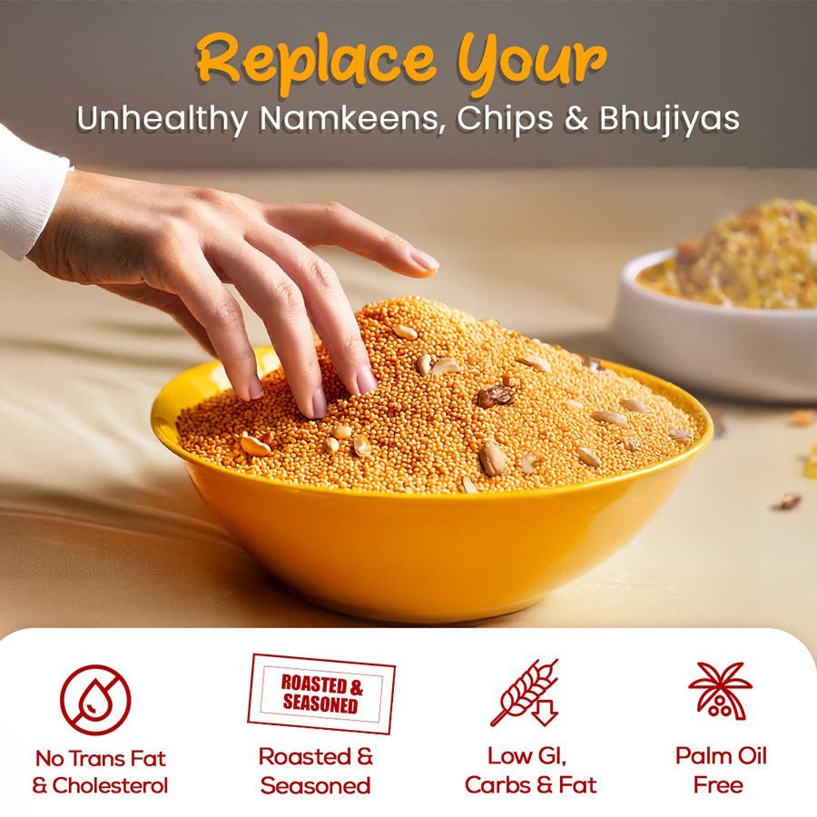 Looking for a zesty, lip-smacking namkeen snack that's good for you? Discover our Tangy Tomato Millet Chivda - where vibrant flavors meet wholesome nutrition!