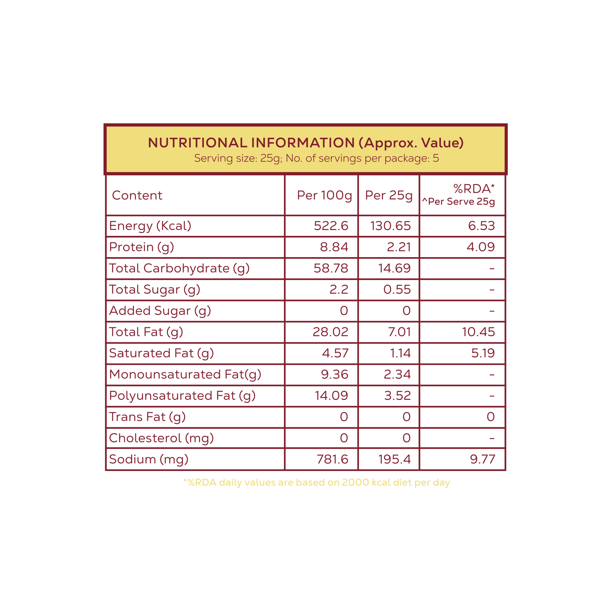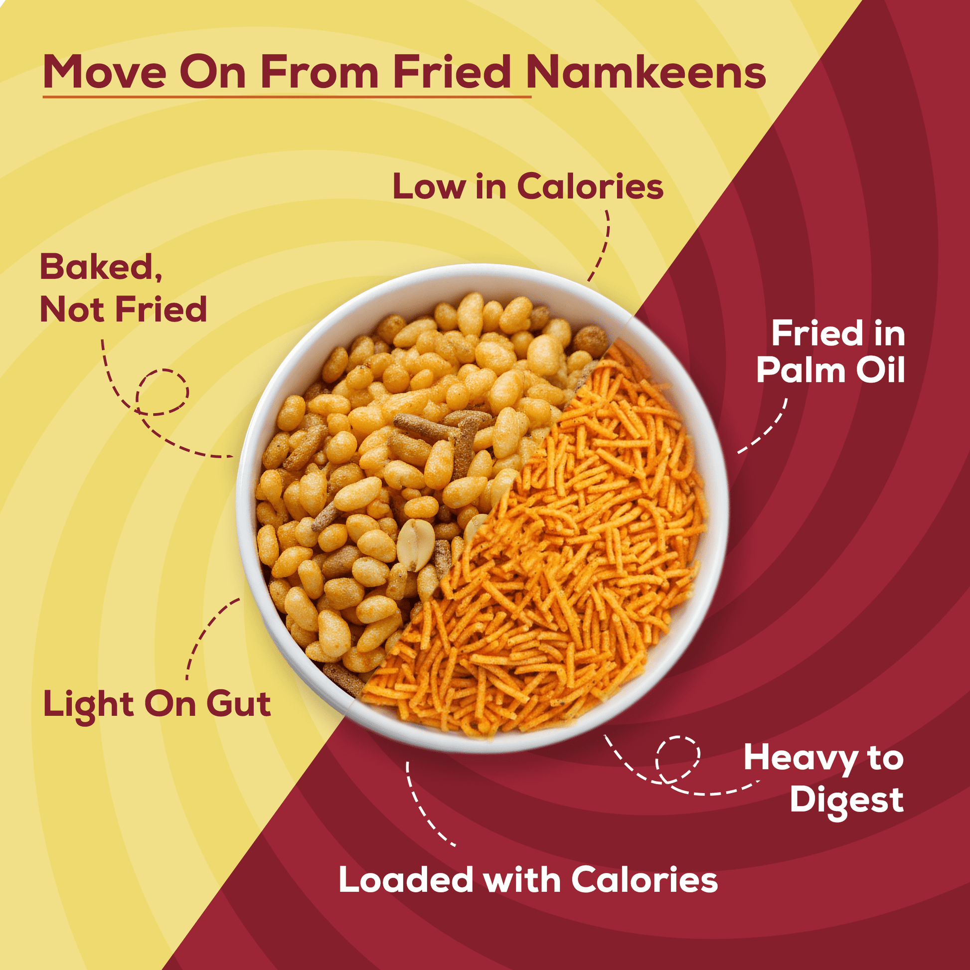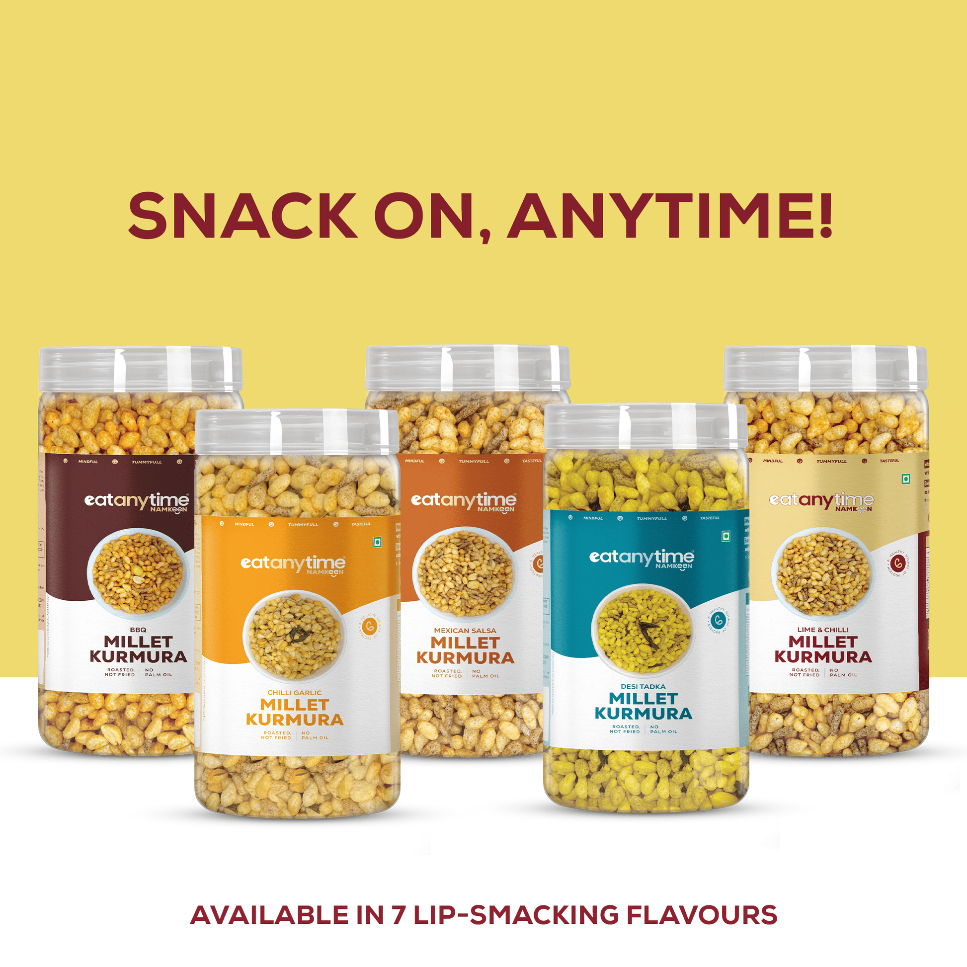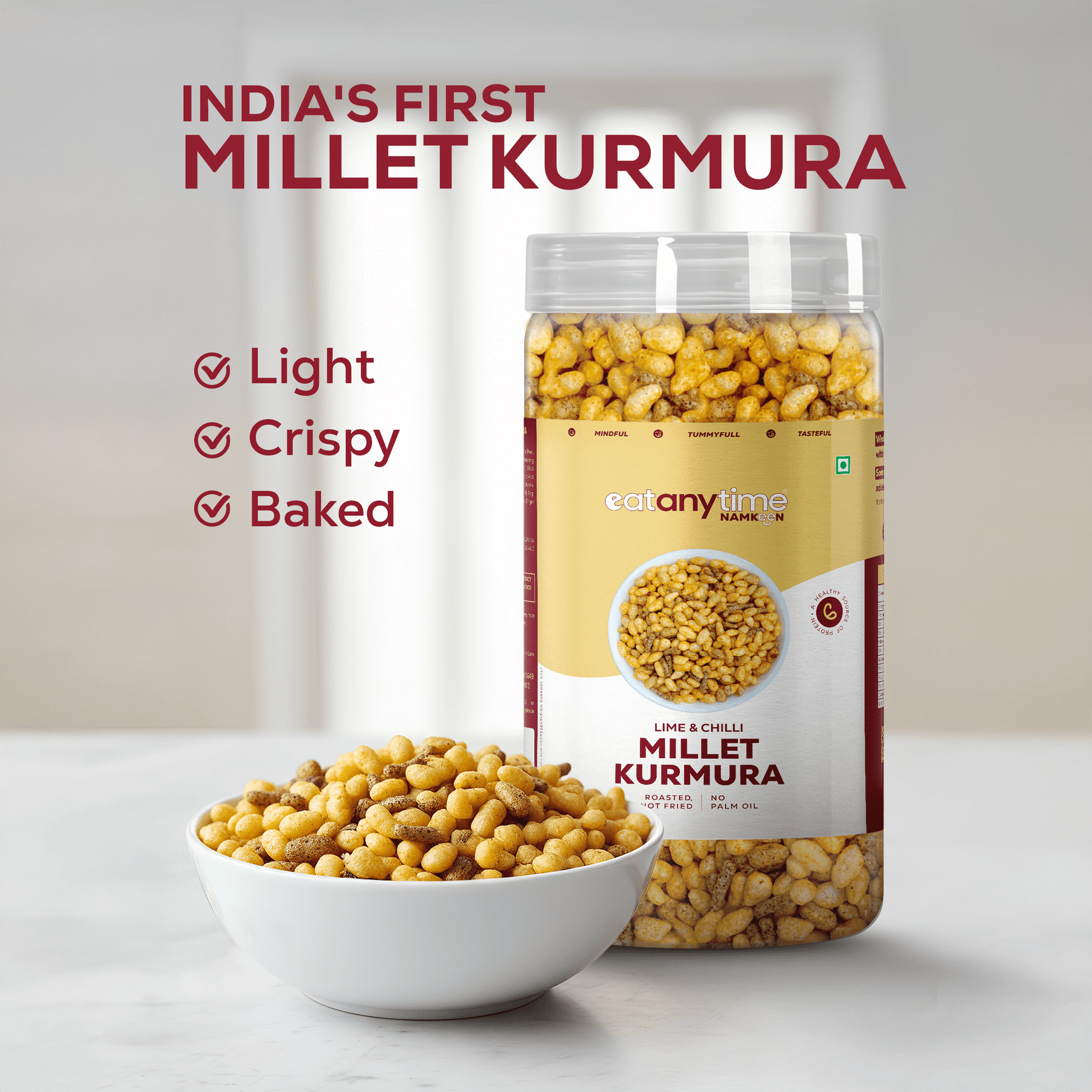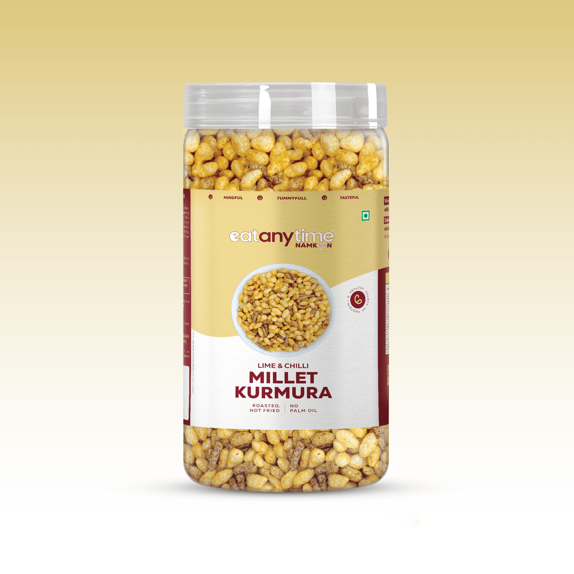 A first-of-its-kind snack, our Lime N Chilli Millet Kurmura is a crunchy, better-for-you twist on your classic puffs. Air-roasted and never fried, it’s made with a wholesome millet blend and seasoned with our signature tangy tomato flavour. With less oil and zero trans fats, it’s the ultimate guilt-free indulgence - perfect for every craving, anytime, anywhere.