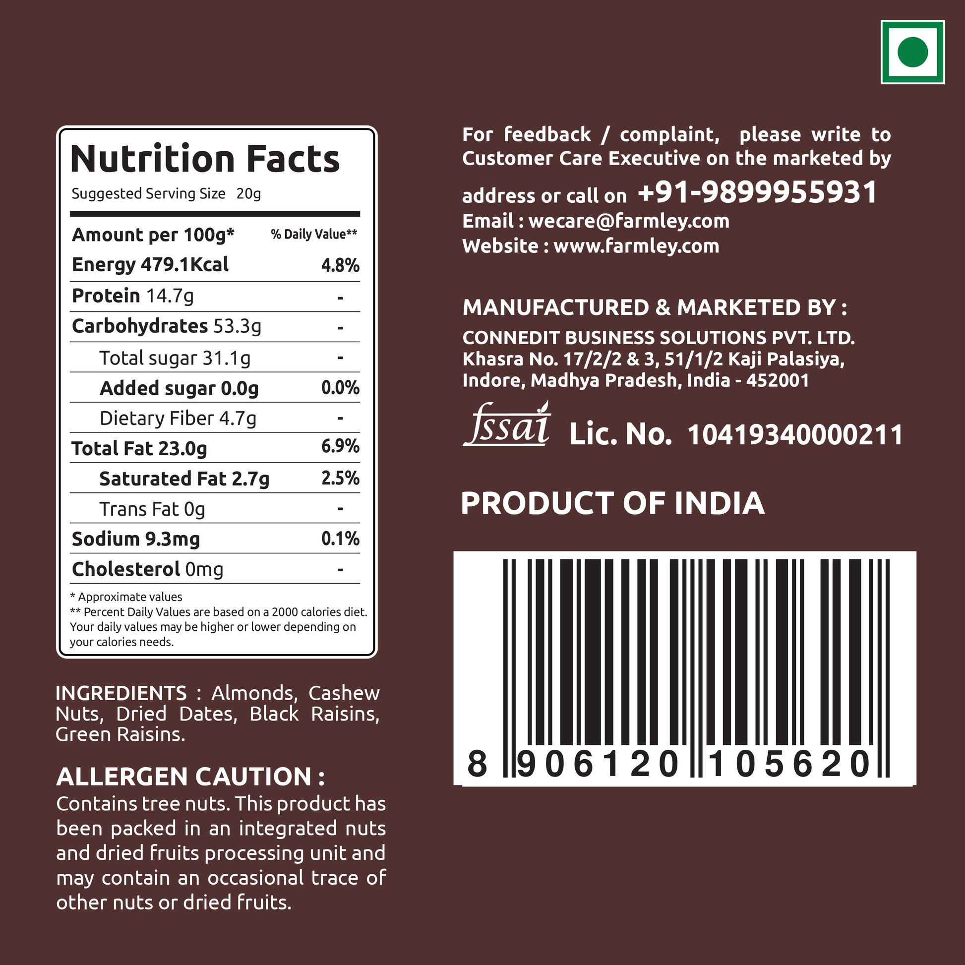 - Offering the goodness of - Almonds, Cashews, Green Raisins, Black Raisins & Dates all at once, the product has been designed to be consumed on-the-go.