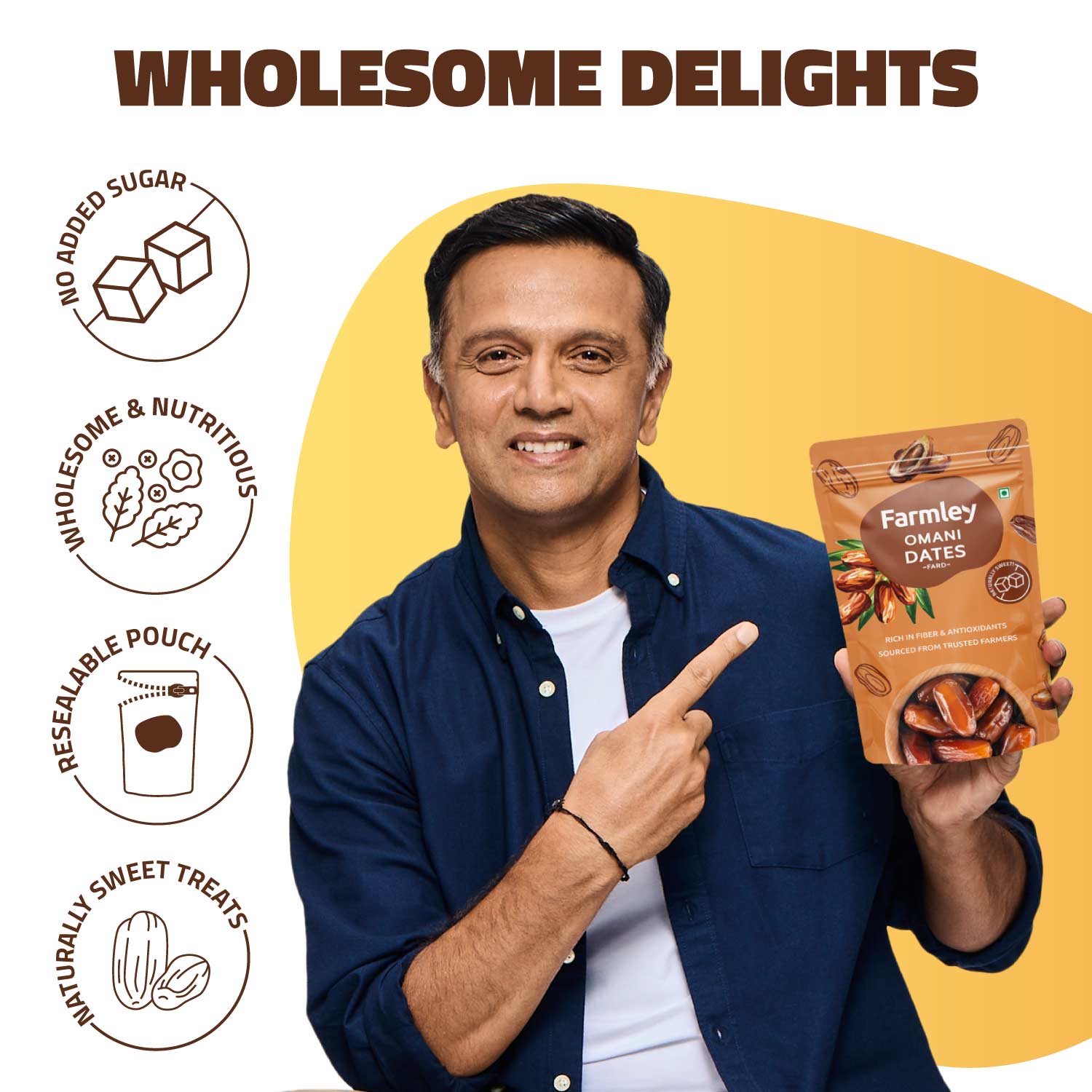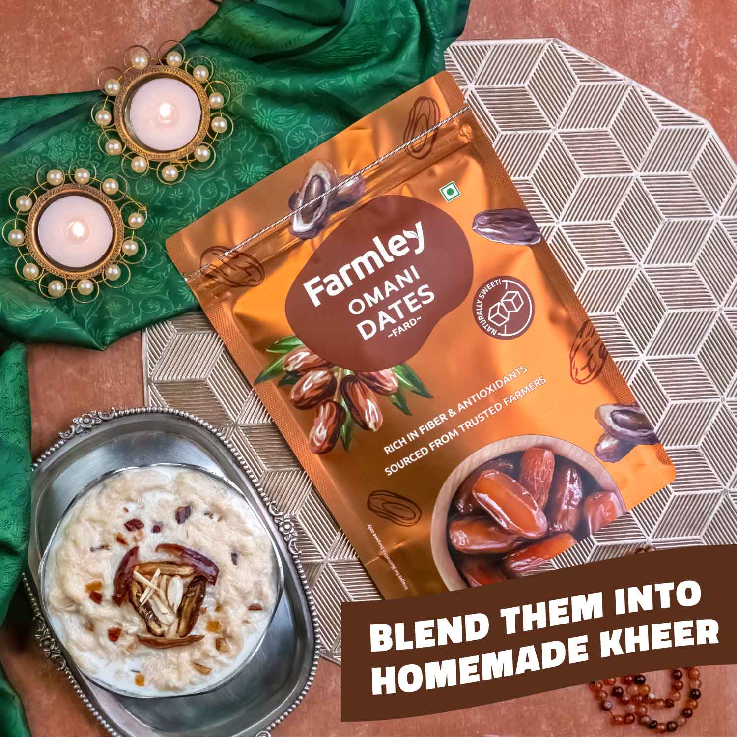 - Introducing Farmley's Omani Dates, a natural sweetener, offering a wholesome alternative to post-meal desserts.