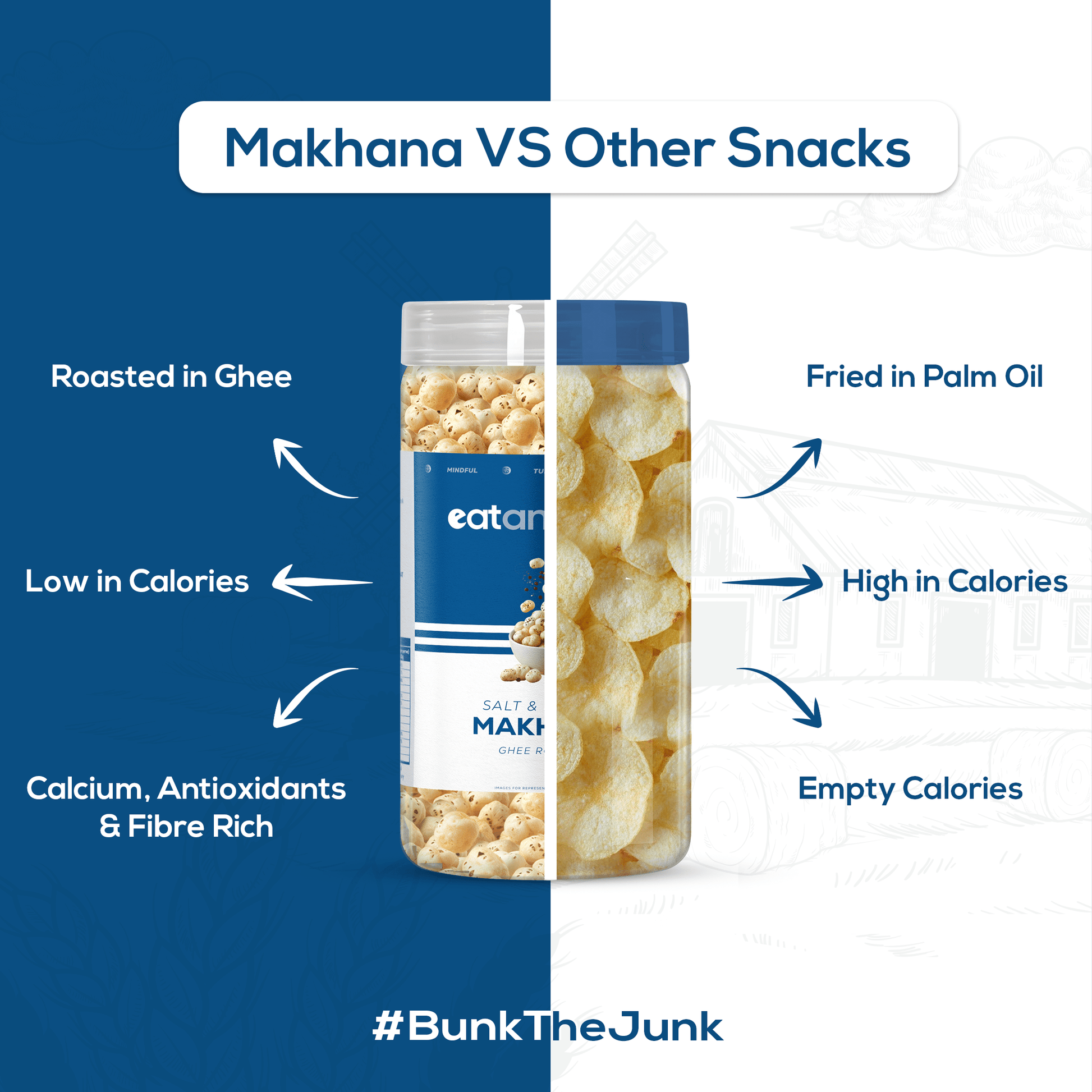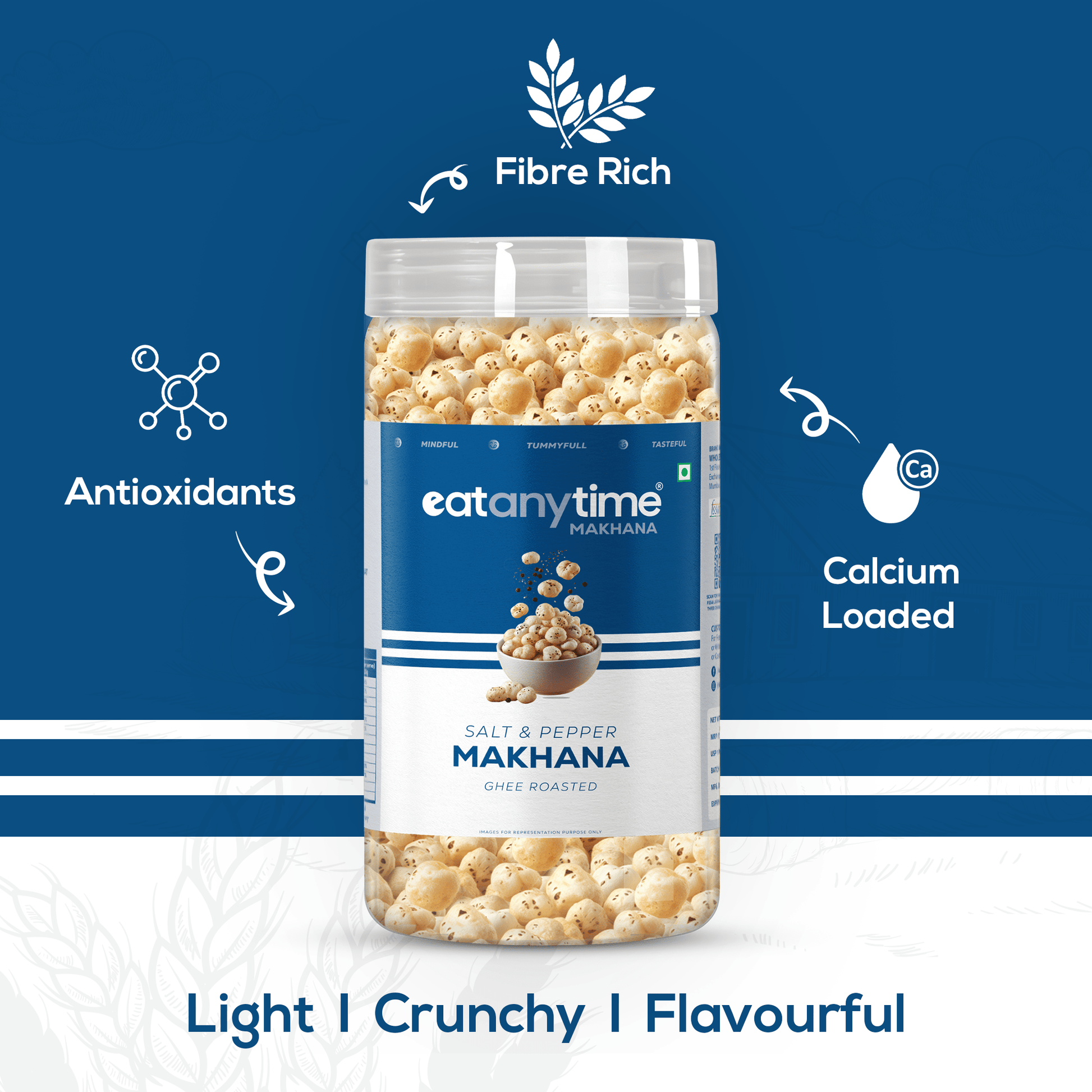 Light, crunchy, and seasoned to perfection! Our Salt & Pepper Makhana is the ultimate guilt-free snack. Made from premium-quality fox nuts, roasted with care, and sprinkled with a classic blend of salt and pepper. Perfect for mindful munching, whether you're at work, relaxing at home, or on the go.