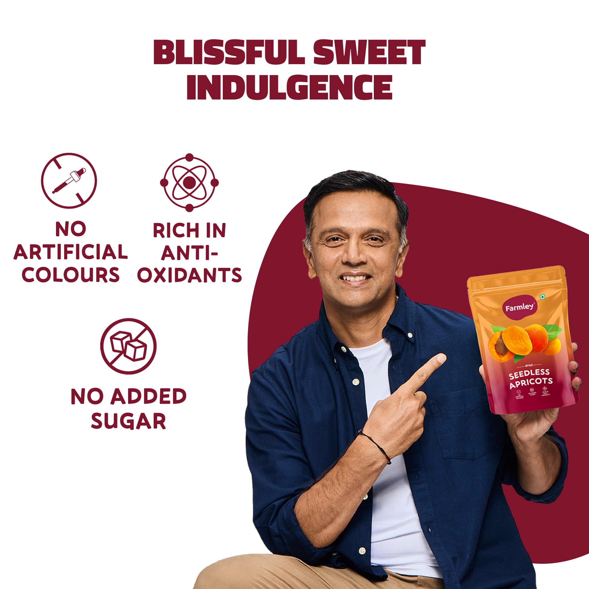 - Savour the natural goodness of Farmley's Dried Apricots - without any added colour - for a wholesome snacking experience.