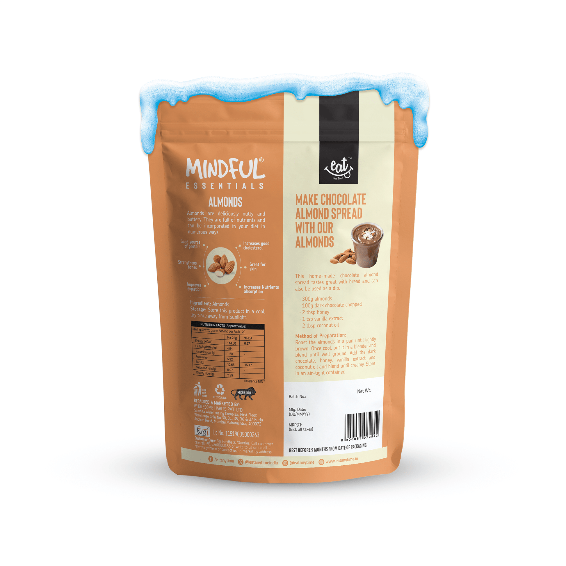 Oh, and did we mention, we're all about keeping it green? Our love for sustainability goes beyond just our almonds. We're talking about responsible farming and packaging that's kind to our planet, because hey, we've got to keep this Earth happy for generations to come. So, when you choose Eat Anytime Californian Almonds, you're not just snacking, you're making a chill, eco-friendly choice for a happier, healthier you.